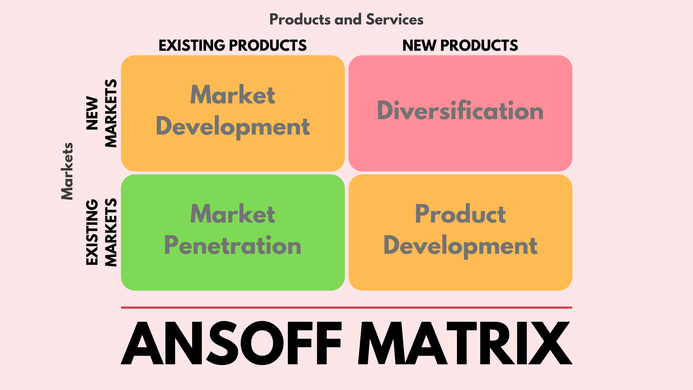 - A business like Coca-Cola benefits from using Ansoff’s Matrix because it allows them to ensure that they are growing their business into different markets whilst also retaining dominance of their existing markets. This process means that they can reduce their dependence on a single market or product by extending their product portfolio.